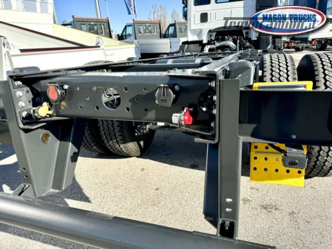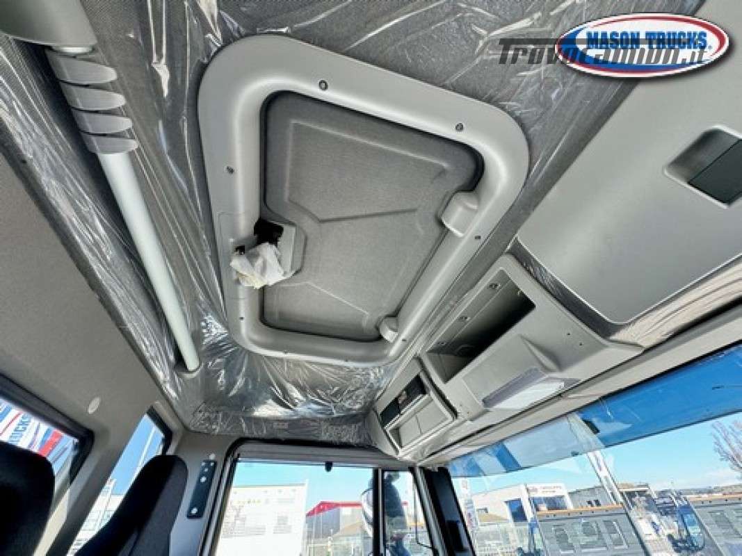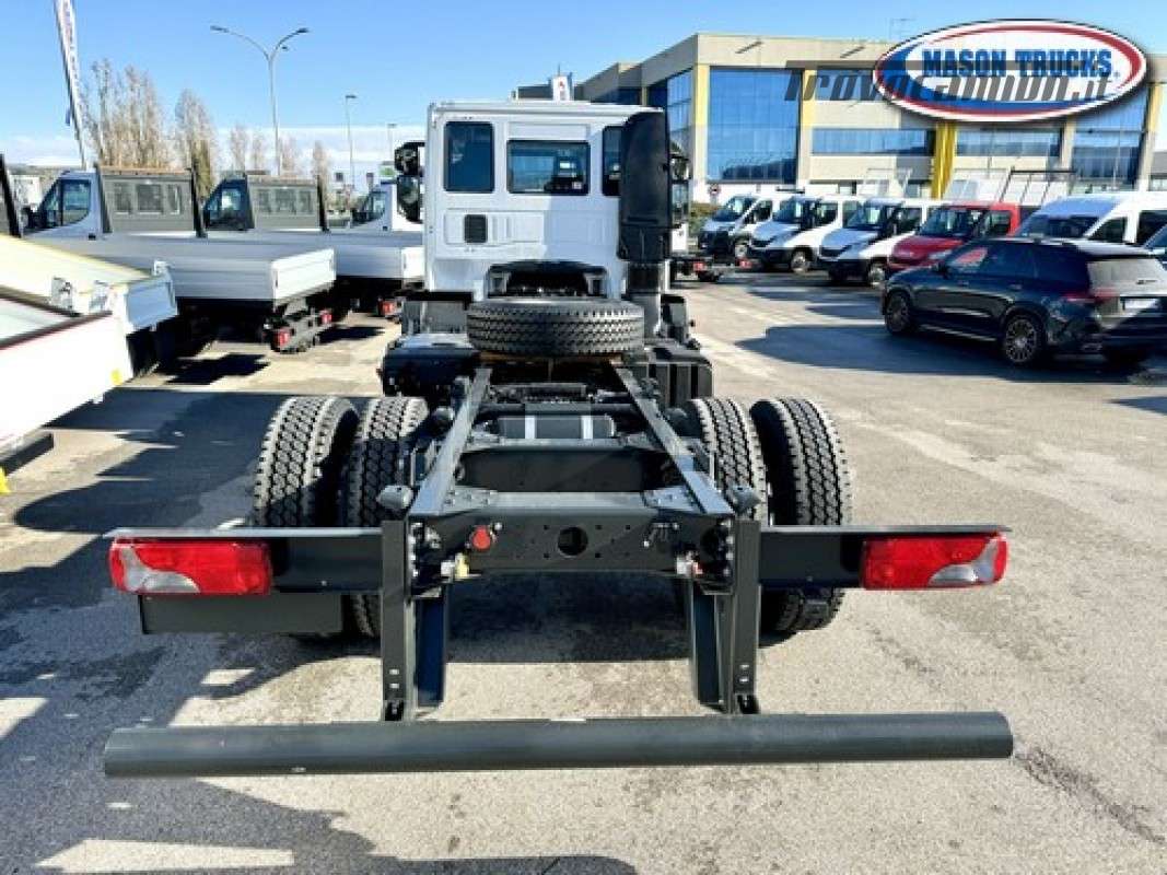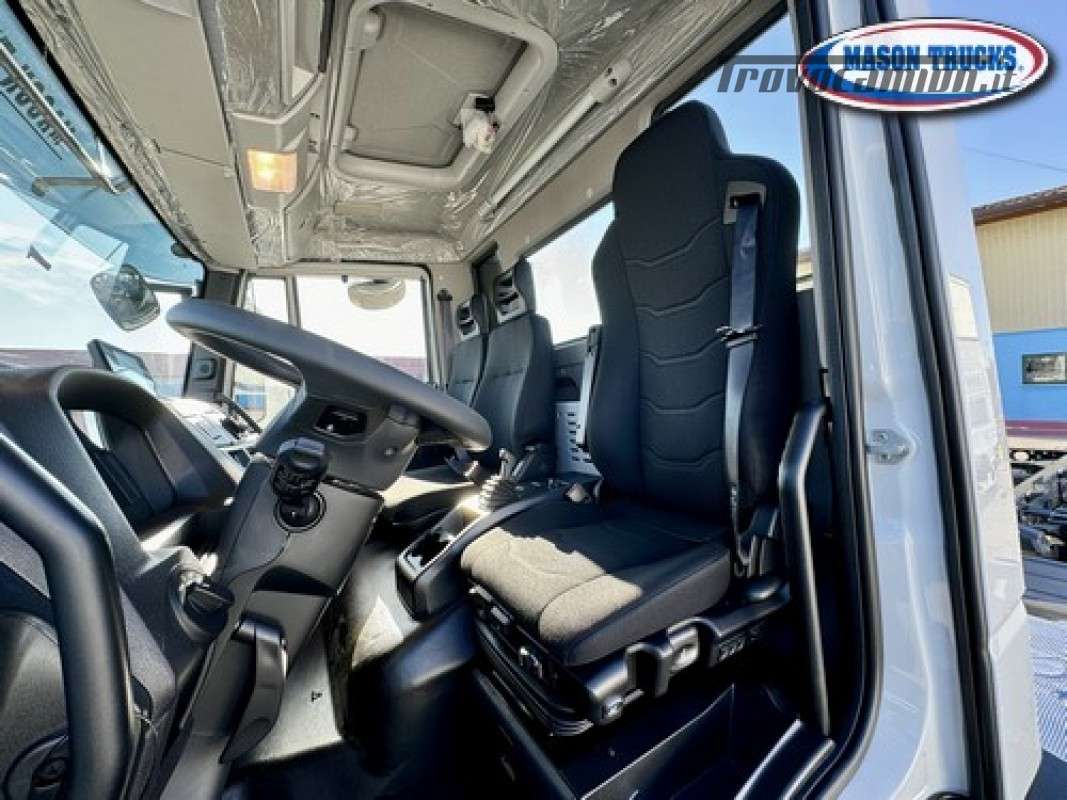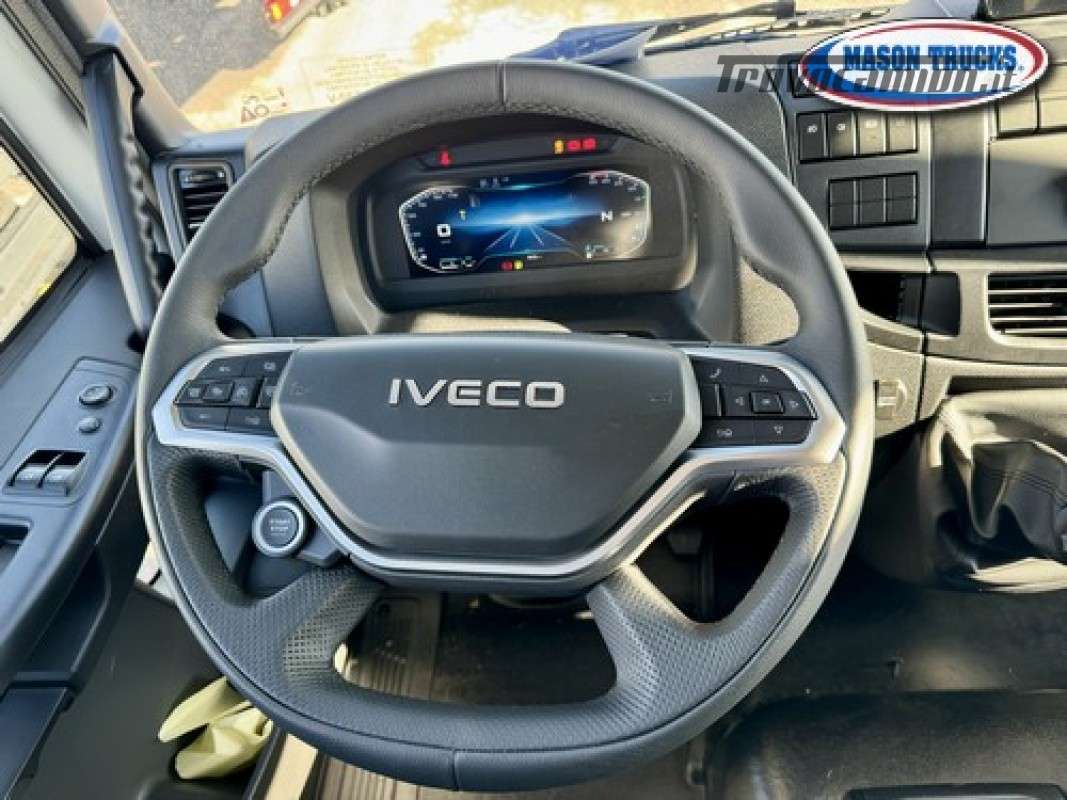 EURO 6E, cambio manuale 9 marce, sospensioni posteriori balestrate, bloccaggio differenziale, presa di forza ZF, expansion module, LDWS invasione corsia, EVSC antisbandamento, EBS, immobilizer, freno motore, cruise control, climatizzatore manuale, sedile conducente Top Confort molleggiato e bracciolo, vetri elettrici, specchi elettrici e riscaldati, chiusura centralizzata con telecomando, radio DAB Bluetooth, telecamera posteriore, volante multifunzione, luci diurne LED, tettuccio apribile, visiera parasole, fendinebbia, serbatoio carburante 200litri, serbatoio ADBlue 30litri, filtro carburante riscaldato, essicatore riscaldato, serbatoio AD Blue riscaldato, protezione radiatore, cronotachigrafo digitale 4.1, avvisatore acustico retromarcia, paraurti anteriore in lamiera, retine parafanali, paraincastro posteriore tubolare, masse 1°asse kg 7500 2°asse 12.000kg, pnuematici 315/80 R 22.5 oltre altri accessori di serie.